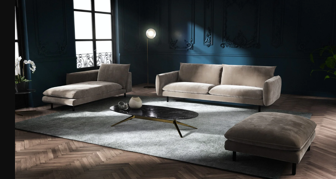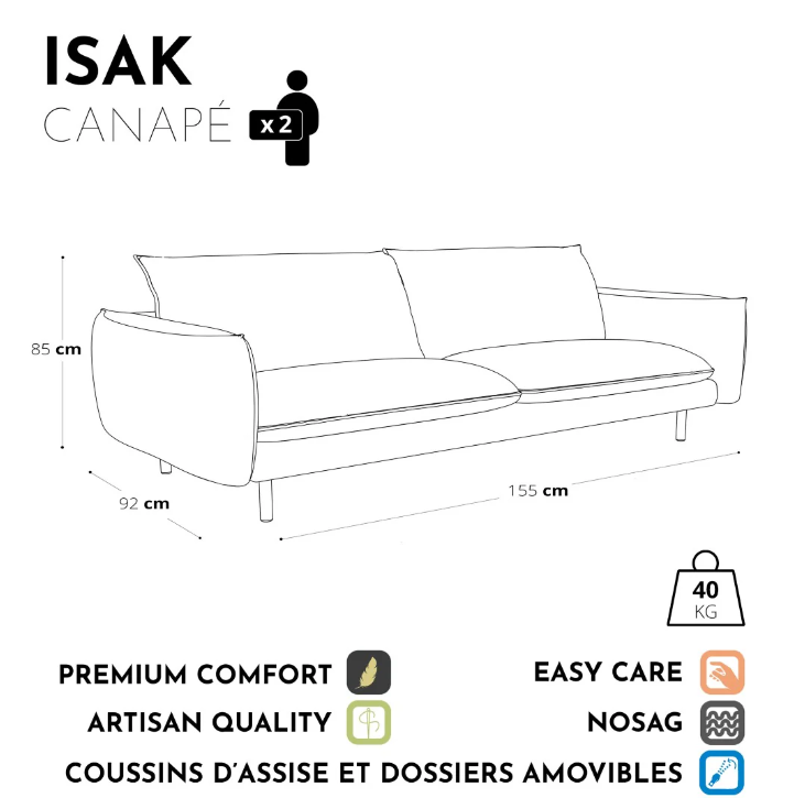 Canapé 2 places ISAK en véritable Velours de la marque de luxe SIA HOME en déstockage en ligne et en magasin à Dijon. Livraison partout en France.