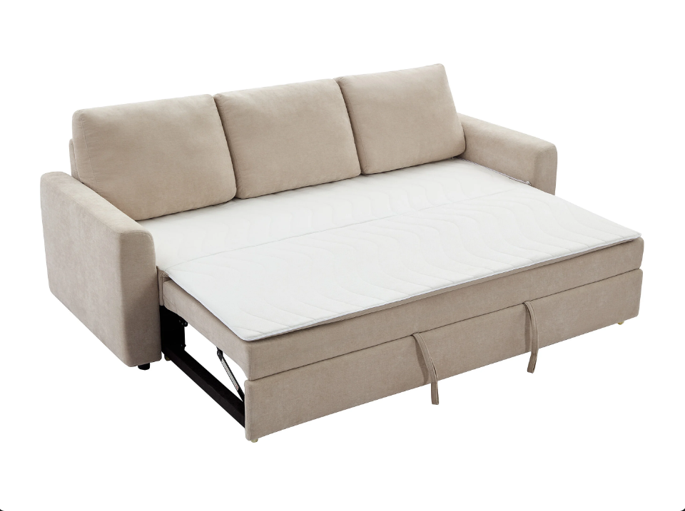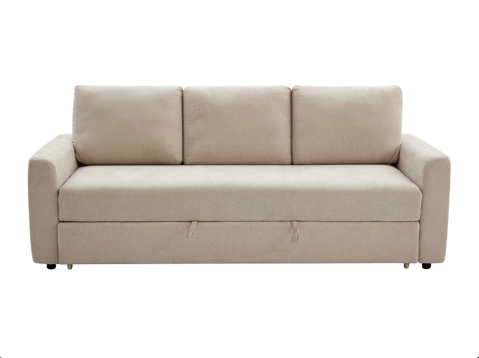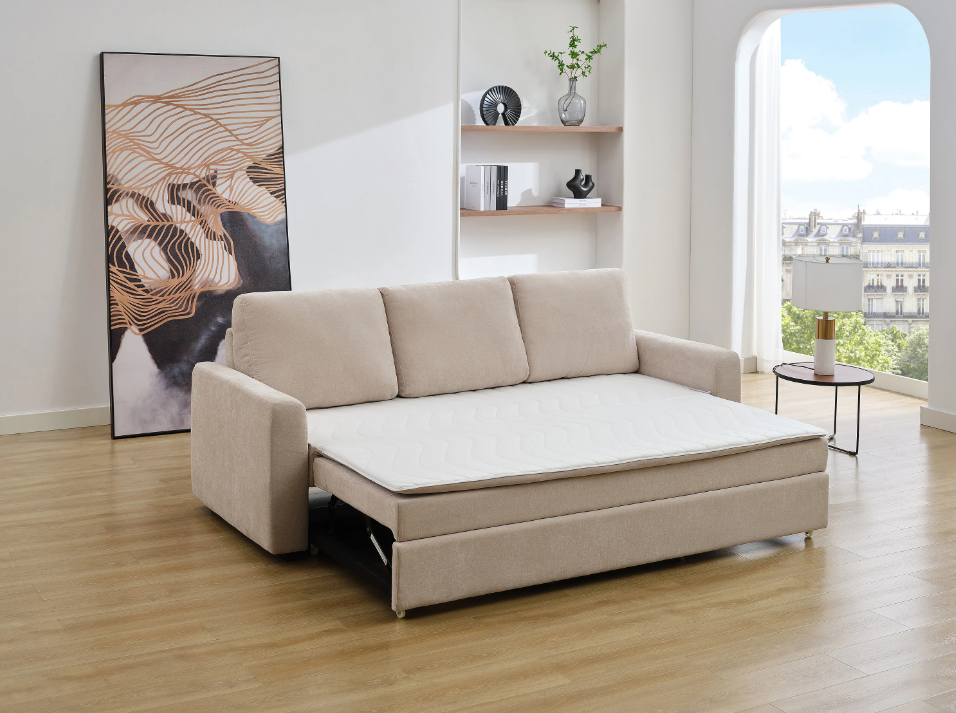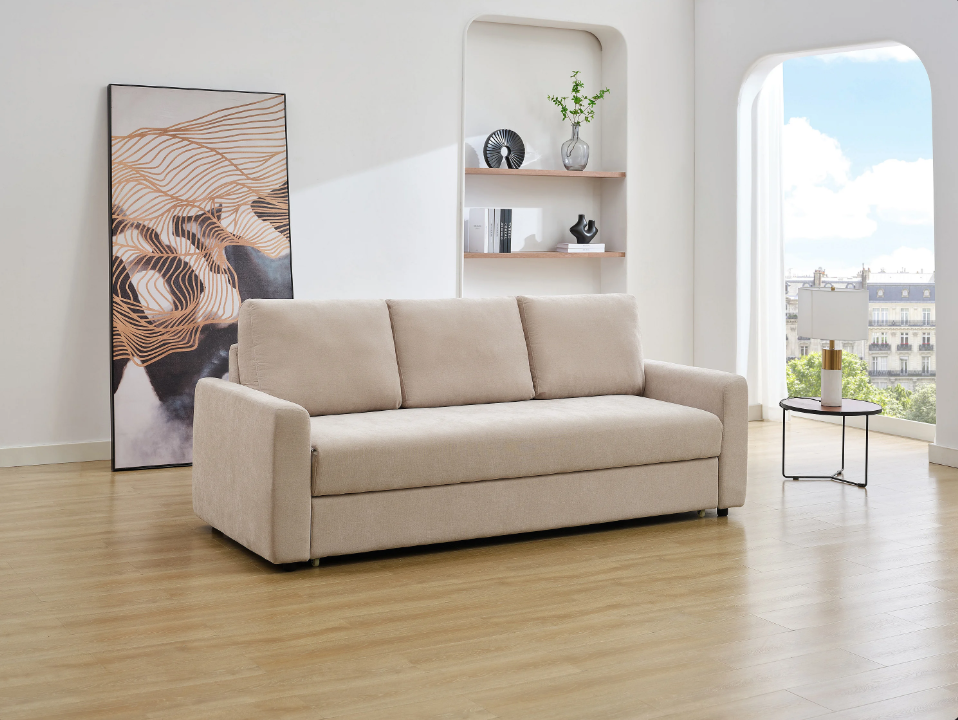 Canapé 3 places convertible en tissu beige avec assise à mémoire de forme ARCATA en déstockage à 750€ au lieu de 1.200€.