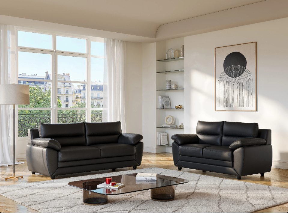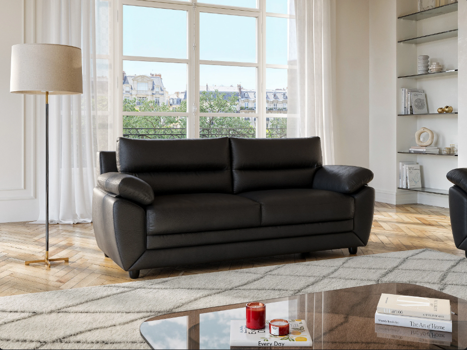 Canapé 3 places MANOA en simili – Noir en déstockage dans votre magasin de déstockage à Dijon et livraison partout en France pour 100€.