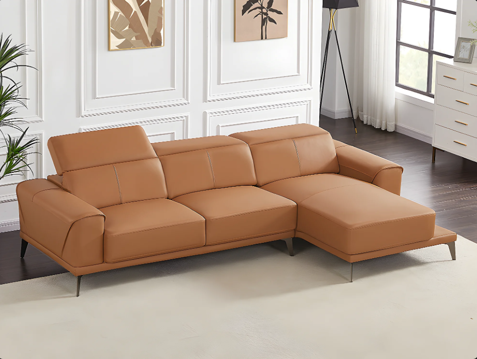 Canapé d’angle droit en cuir de buffle camel ANDOR en déstockage dans votre magasin de déstockage à Dijon.