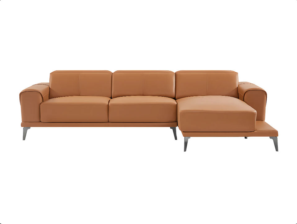 Canapé d’angle droit en cuir de buffle camel ANDOR