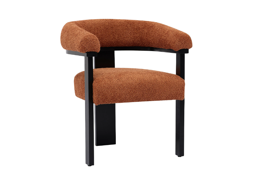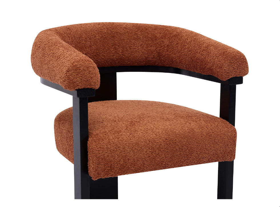 Chaise avec accoudoirs en tissu bouclette et bois d’hévéa noir – Terracotta – LIVELIA de Pascal MORABITO en déstockage à 90€. Magasin au 13 Rue des Etourneaux, 21220 Fixin (Dijon Métropole). Ouvert de 10h à 19h.