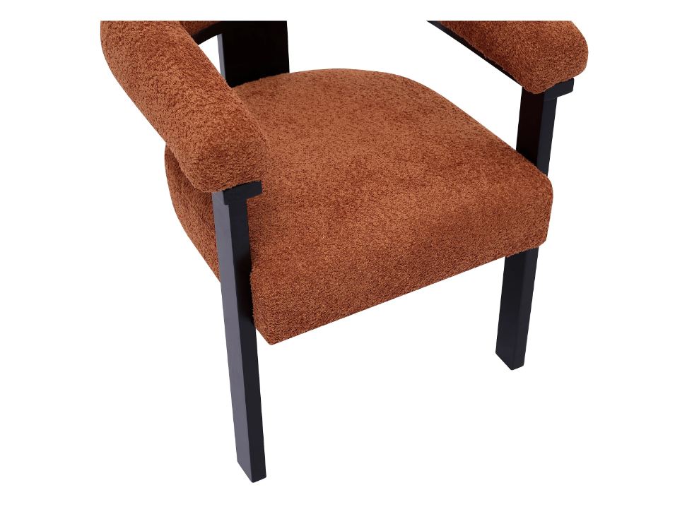 Chaise avec accoudoirs en tissu bouclette et bois d’hévéa noir – Terracotta – LIVELIA de Pascal MORABITO en déstockage à 90€.