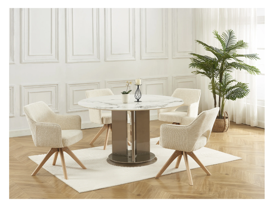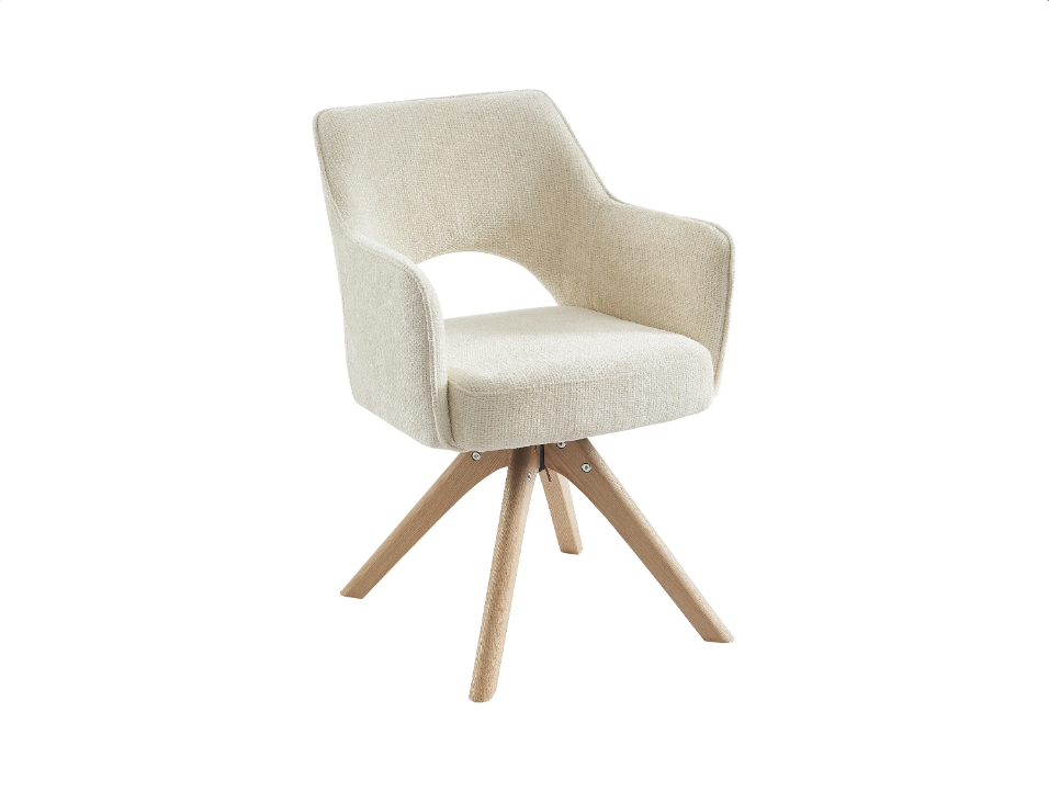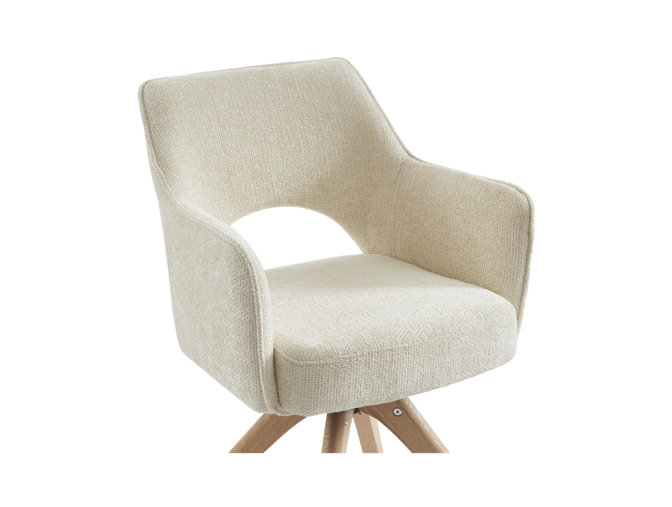 Chaise pivotante avec accoudoirs en velours côtelé et métal noir – Crème – KONYA