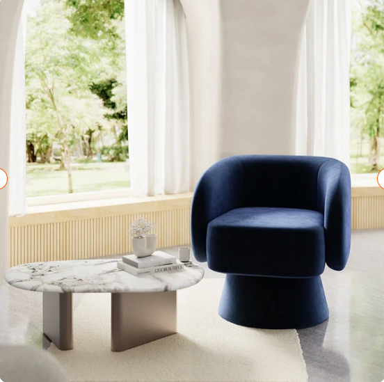 Fauteuil pivotant ORSON Velours Bleu paon de la marque de luxe SIA HOME vendue chez nous à 350€ au lieu de 599€. A venir chercher en magasin ou livrer chez vous pour 25€. Livraison dans toute la France 25€