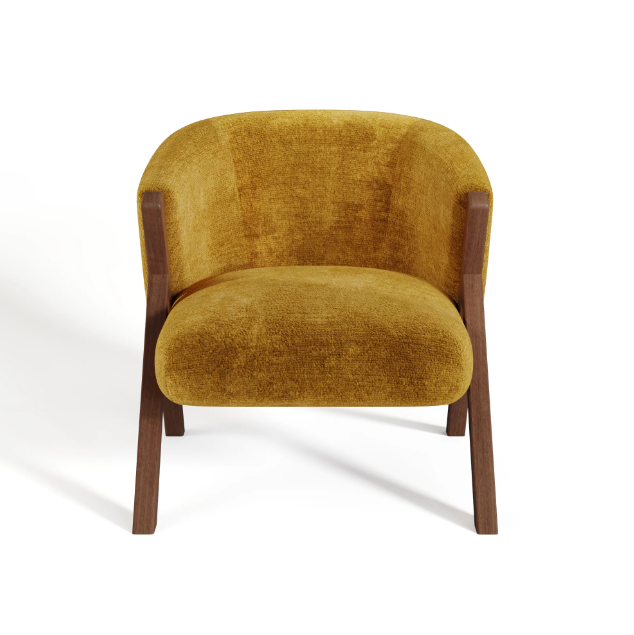 Caractéristiques du Fauteuil PLUSH velours texturé moutarde pieds walnut