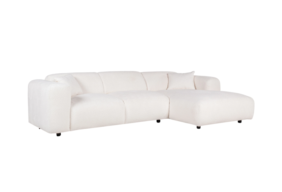 Grand canapé d’angle droit en tissu bouclette blanc POGNI de Maison Céphy en déstockage dans votre magasin de déstockage à Dijon et livraison partout en France pour 100€.