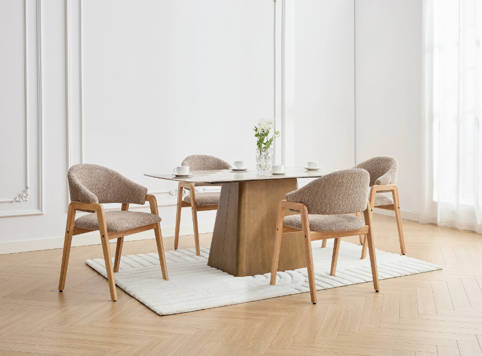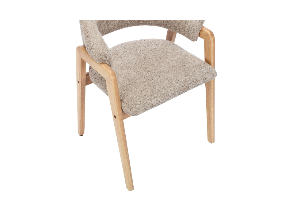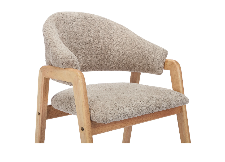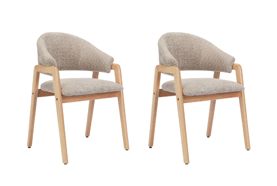 Neuf Lot de 2 chaises avec accoudoirs en tissu bouclette et bois d’hévéa – Taupe et naturel – SOLUNA.