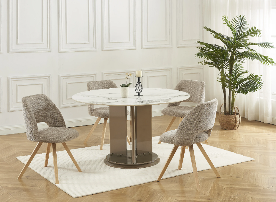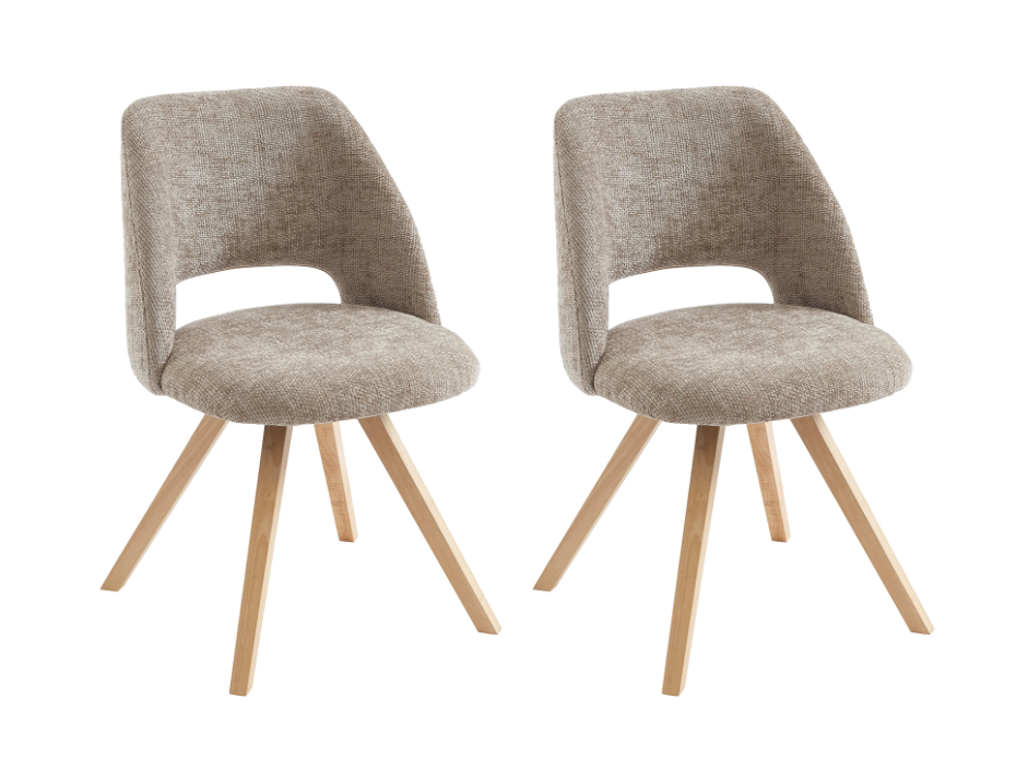 Lot de 2 chaises en tissu et bois d’hévéa – Taupe – VESIANI en desttockage en ligne et en magasin. Livraison dans toute la France.