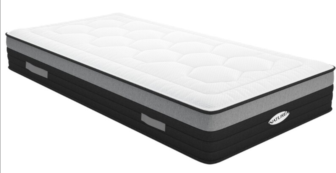 Matelas 90 x 200 cm ressorts ensachés 7 zones et mémoire de forme ép.25cm – AMARANTE de NATUREA.
