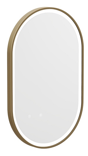 Miroir de salle de bain lumineux ovale anti buée avec contour doré.